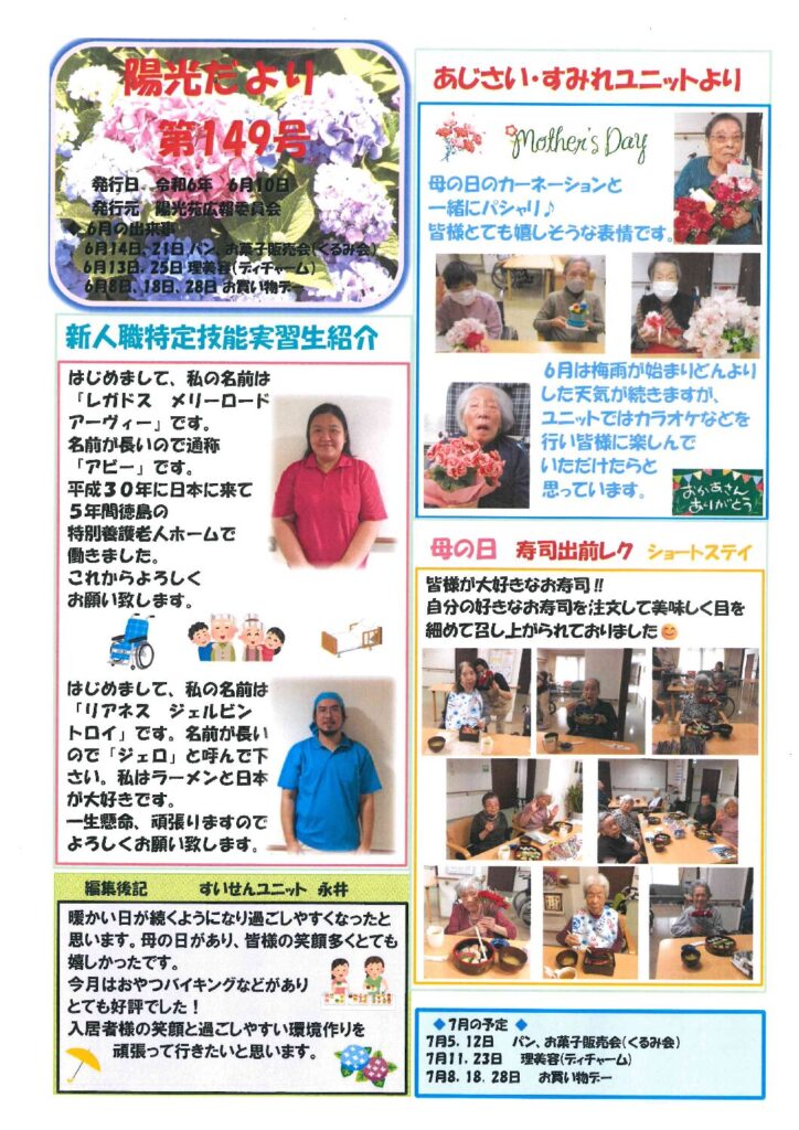 令和6年6月号、陽光だよりを掲載しました。