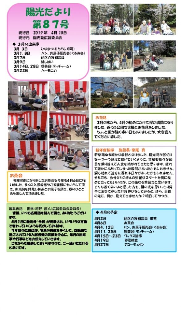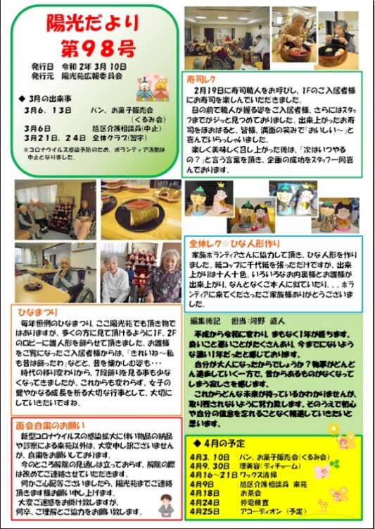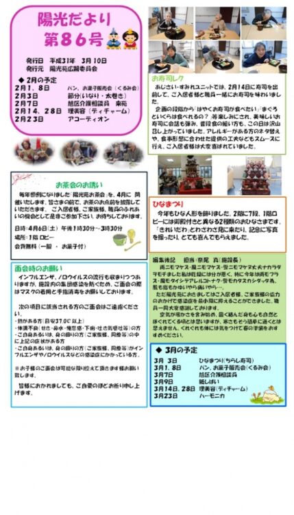 過去の陽光だよりはこちらのページから閲覧いただけます。